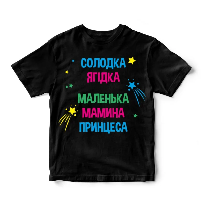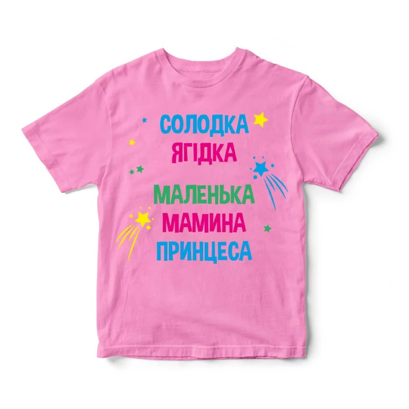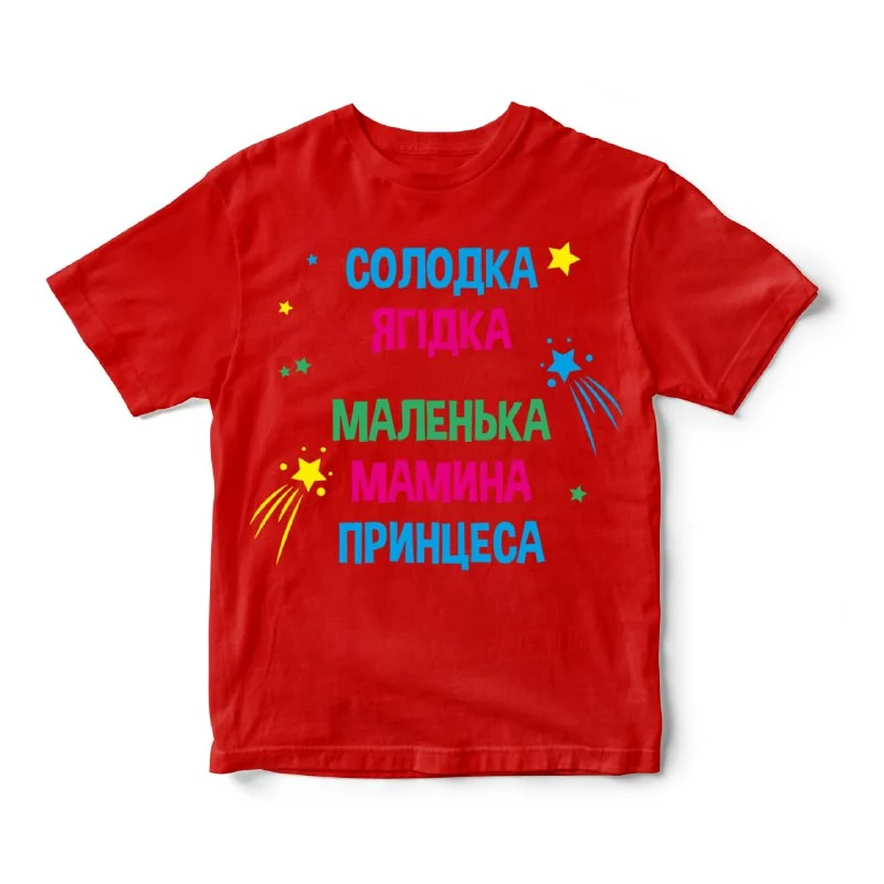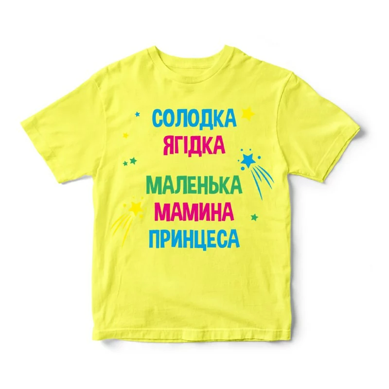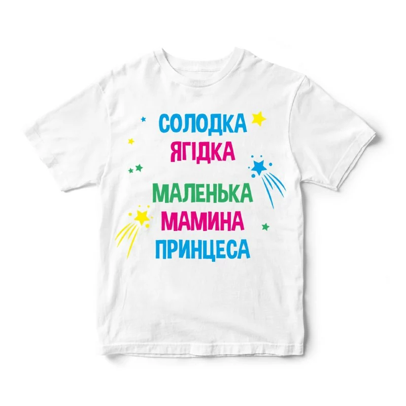 Детская футболка "СОЛОДКА ЯГІДКА! МАЛЕНЬКА МАМИНА ПРИНЦЕСА!". Разные цвета и размеры.