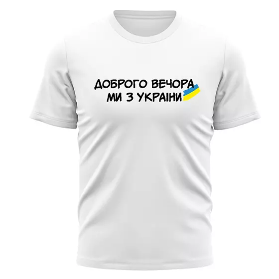 Футболка мужская "Доброго вечора! Ми з України!" Разные цвета и размеры.