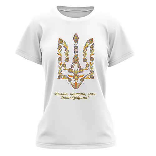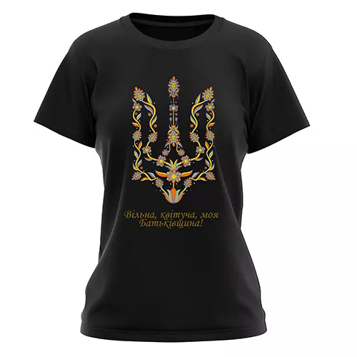Футболка женская "Вільна квітуча моя Батьківщина!" Разные цвета и размеры.